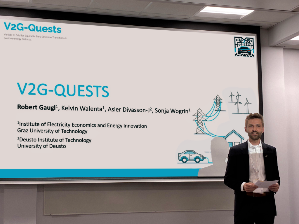 V2G-QUESTS employs a research-oriented, multidisciplinary approach to guide Vehicle-to-Grid (V2G) technology into the fabric of urban Positive Energy Districts (PEDs), prioritizing inclusivity and environmental resilience while taking relevant stakeholders into account. Central to its strategy is the utilization of electric vehicles (EVs) as collective energy storage units to stabilize local power networks against intermittent energy supply challenges and the management of sustainable yet intermittent energy sources for PEDs. By engaging a blend of engineering, social sciences, geography, legal studies, and management, the project meticulously tailors its methodologies to enhance the integration of EVs into daily life, ensuring equitable access to electric mobility that is capable of supporting profitable business models.