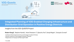 As part of the webinar “UTM Urban Mobility Webinar (4/4): Steering towards sustainability via electrified transport”, Robert Gaugl from the Institute of Electricity Economics and Energy Innovation (IEE) at TU Graz presented the research project V2G-QUESTS.